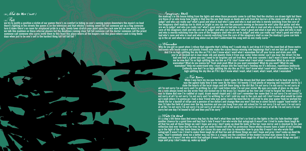 The mechanics for Eaten By The Sea were not about coming up with a solid one-hook wonder and then paraphrasing the discovery and format over and over again to bleed an album dry of any redeeming value, essentially making all tracks sound rigorously and boringly consistent, which major record labels always tend to stubbornly push for - but rather, the vision was more about carving out new sounds, techniques, melodies, hooks and styles at each new fathom within the vast ocean of this breathtaking material.