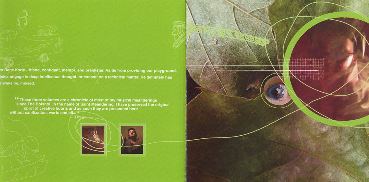 Bellyache, volume 2 of the 3 CD collection (Bullish, Bellyache & Belch), is a rickety bridge of sorts, crossing you from smack dab in the middle of The Bolshoi days and onward to current Trevor-times. With musical textures from both - where Trevor has been - and - where Trevor is ultimately sailing - this volume is like a Harley ride on a voluptuous back-road.